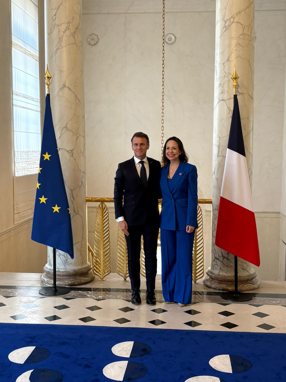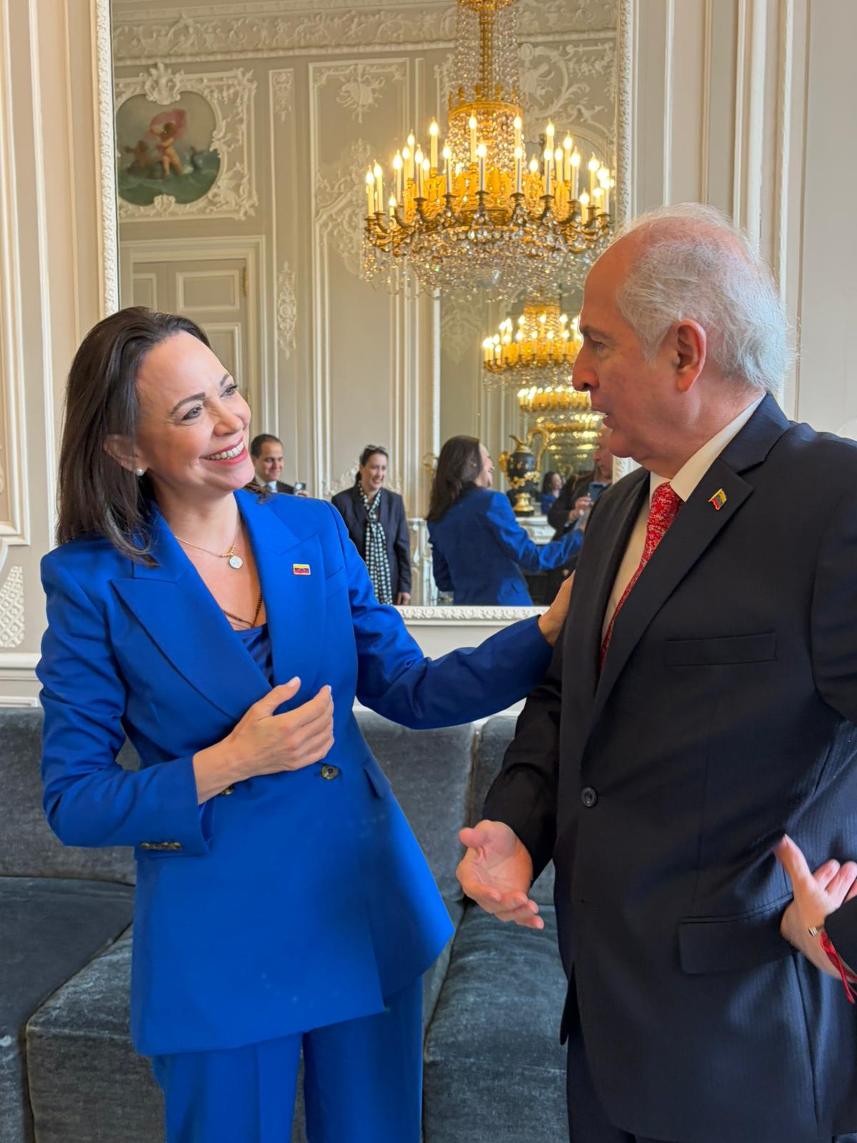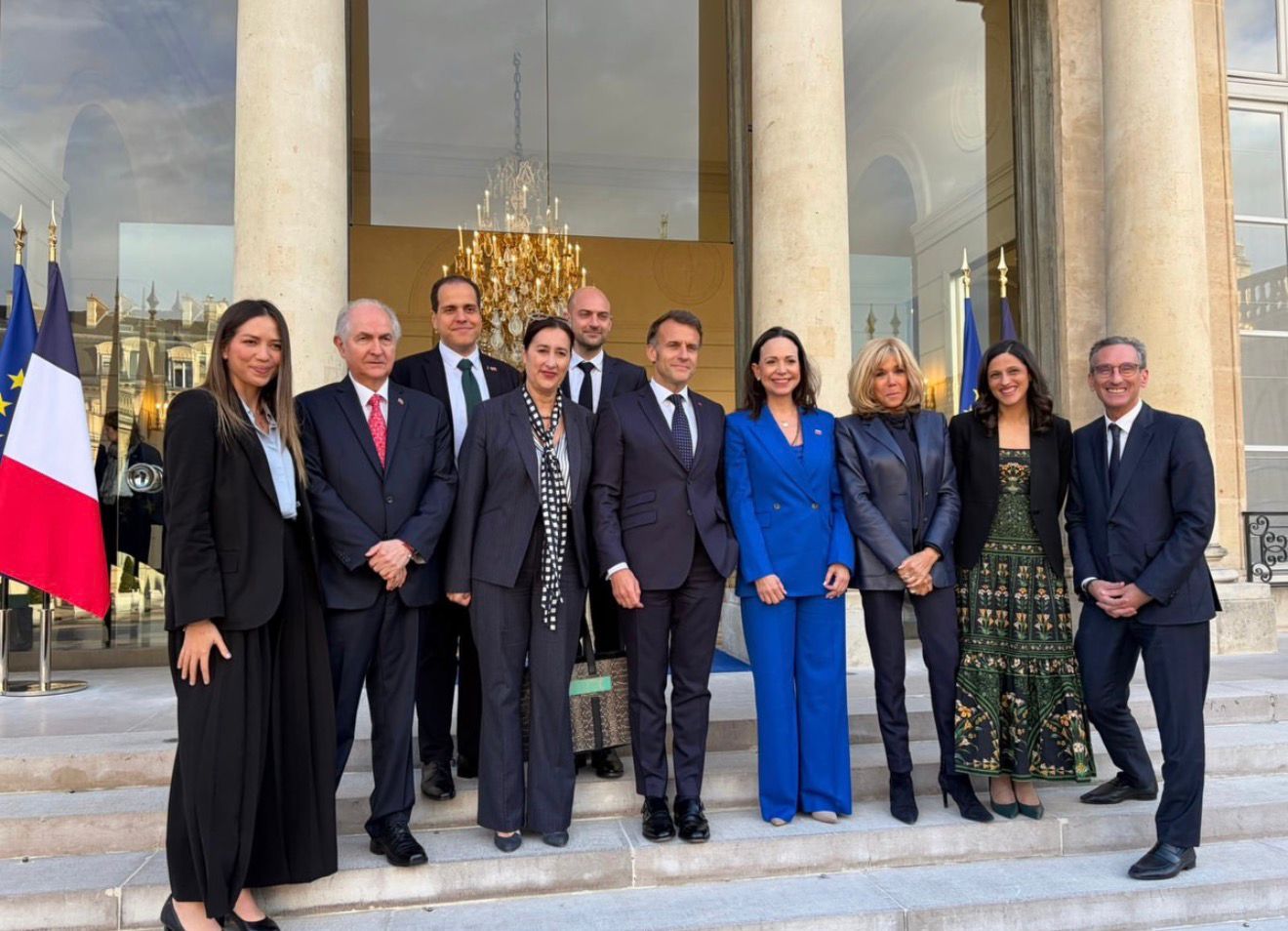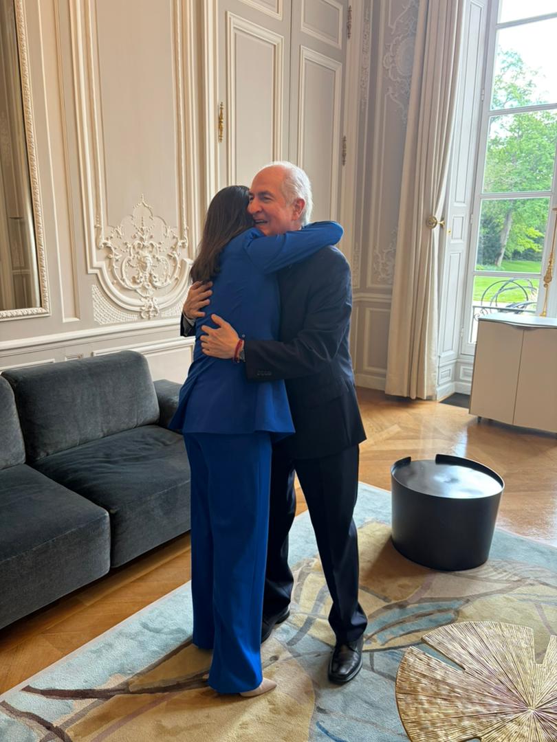 La reunión con Macron y su canciller en el Elíseo se extendió más allá del tiempo previsto y tuvo un momento inesperado: la aparición de su esposa Brigitte, que se acercó a saludar a María Corina con mucho cariño. Hubo preguntas francas del presidente francés sobre la situación en el terreno, y respuestas igual de francas de María Corina. Larcher, presidente del Senado francés, nos había recibido horas antes con la misma disposición acompañado de senadores de las distintas facciones políticas representadas en el parlamento francés. Al salir de ambos encuentros llevábamos compromisos concretos: acompañamiento francés a una transición democrática, presencia diplomática activa, coordinación con los otros socios europeos. Francia asumía una posición que hasta entonces había delegado en otros. Ese fue el primer logro del viaje.
